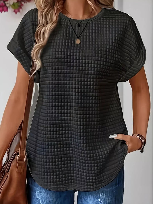 Plus Size Textured Round Neck Short Sleeve Top